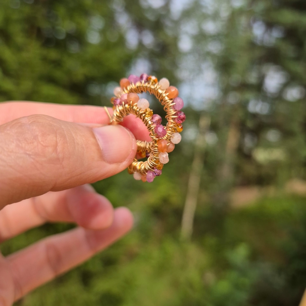 Rosa gyllen drøm - Edelstein i nyanser fra klar rosa til oransj og gul. Rosa Safir, Granat, og Månestein.