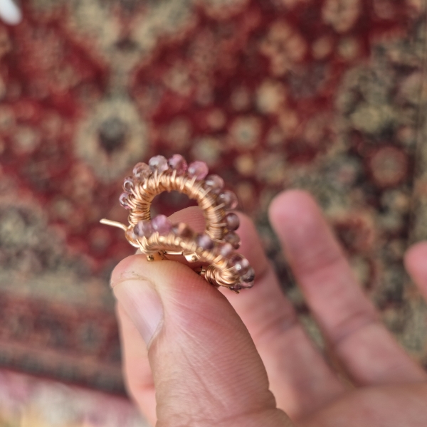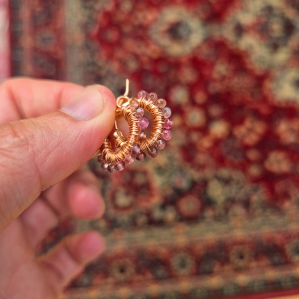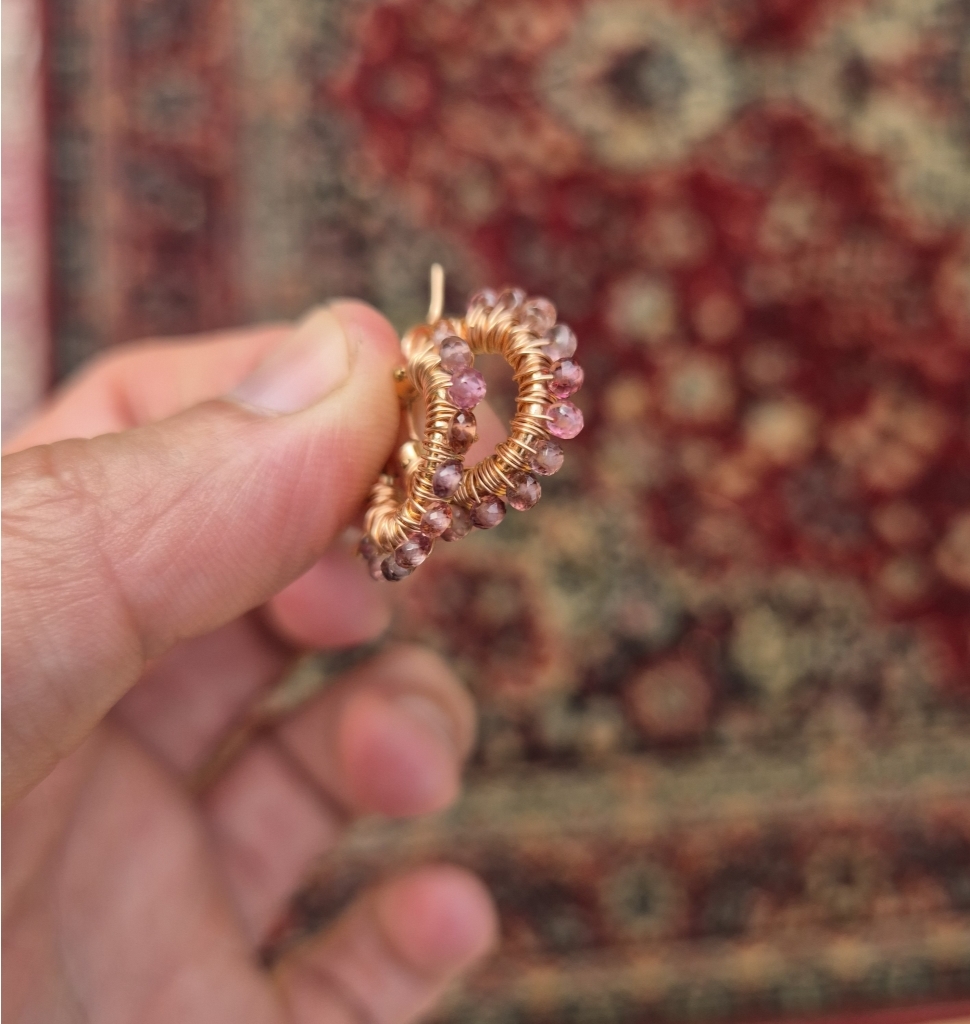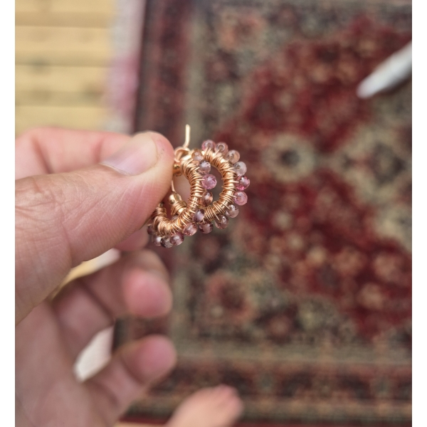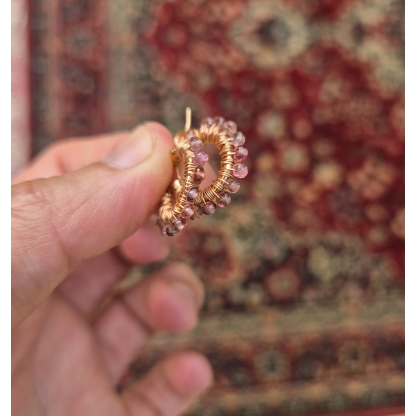 Rosa gyllen skjønne øreringer med krans av Spinell Edelstein. Dem har innside diameter er 13mm, ytterst ca 2 cm. Metallet er av rosegull 14 Karat Gold-Filled, som er hypoallergisk vennlig og gir et tilnærmet evigvarende lag med gull.